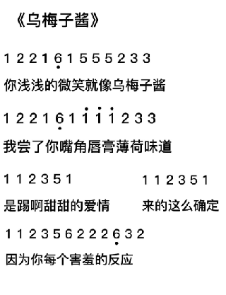 9、烏梅子醬琴譜
