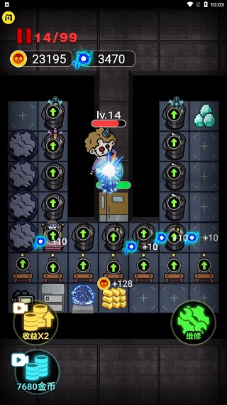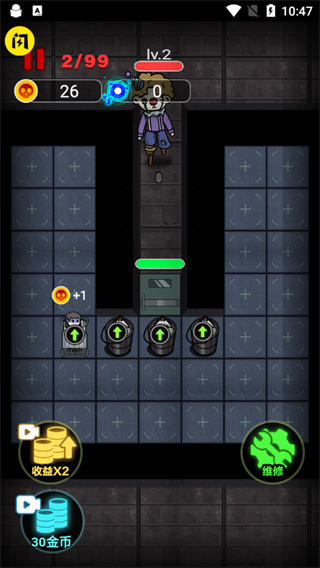 游戲中唯一的輸出手段,每升一級輸出會翻一倍,在于多而不在于精!炮臺一定要造很多,而不要照著一個炮臺一直升級,同時要注意炮臺的攻擊距離,避免造太遠打不到鬼的情況。