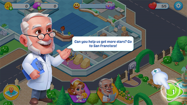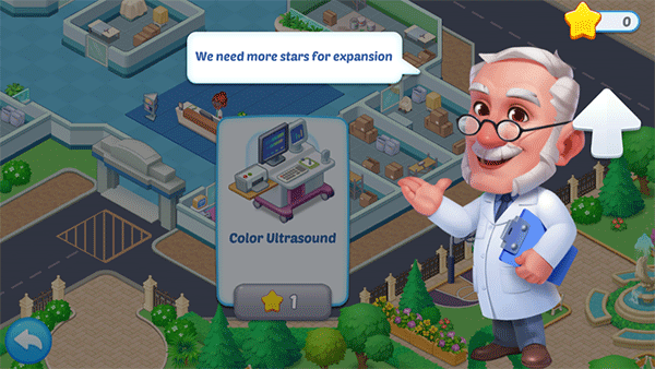 5、上方進度條可以看到獲取星星的進度和醫(yī)生護士的人數(shù)