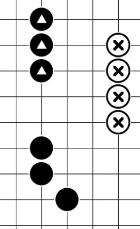 2.:在棋盤上與棋子緊緊相鄰的空交叉點,一個棋子的氣數(shù)不可能超過四氣,但相連的棋子則可能有四氣以上。在對方棋子的活路上落子緊迫,稱為“緊氣”。
