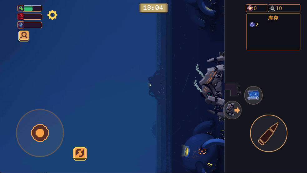 滿級魚雷和移動速度,開局直接往上/下沖到底,每到一個礦井直接開礦,魚雷炸一下,吃到科技升級點數就走,一直循環(huán)操作跑,一直走到最頂/底穿過三次云層,也差不多開完一路的礦井也就被打死了(或直接主動退出)
