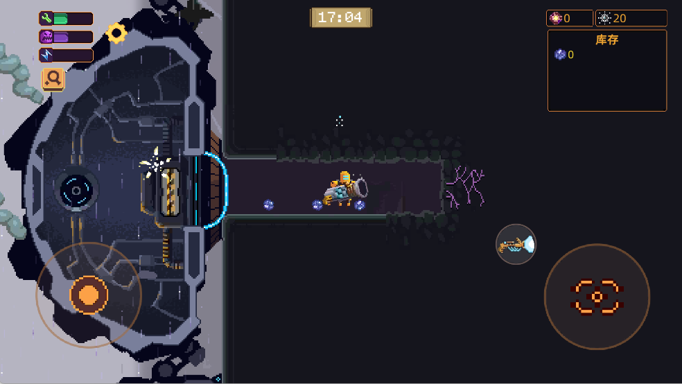 腿,跑起來才是這個游戲的開始,因為游戲地圖自上而下一共7層,不同的層有不同的特殊礦產,玩家出生在中間,想要在有限的時間內通關是一定會上下來回跑的,另外,移速升滿之后可以非常簡單的躲避boss的觸手攻擊(這也就意味著 上跳 和 下跳 這兩個升級變得可有可無)。