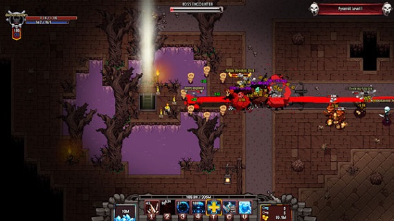 在城鎮(zhèn)中有一個(gè)藍(lán)色的橢圓,通過這個(gè)橢圓的魔法門我們可以選擇想要進(jìn)入的戰(zhàn)斗區(qū)域。接著就可以開始激動(dòng)人心的戰(zhàn)斗了。來到一個(gè)場景之后,每一個(gè)回合都有一定數(shù)量的怪物出現(xiàn)。我們需要控制角色不斷的在場景中擊敗怪物和破壞場景中的箱子來獲得獎(jiǎng)勵(lì),有時(shí)候我們會撿到裝備,有時(shí)候我們會撿到金幣。通過這樣不斷的戰(zhàn)斗獲得獎(jiǎng)勵(lì)讓自己的等級技能提升,獲得更好的裝備等等。