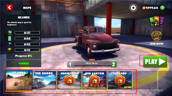 1、打開在本站下載的脫離道路無限金幣版游戲,進入游戲首頁,選擇你想要的游戲場景,點擊開始游戲;