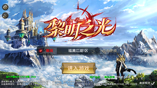 1、打開黎明之光手游,登錄賬號選擇區(qū)服后點(diǎn)擊進(jìn)入游戲;