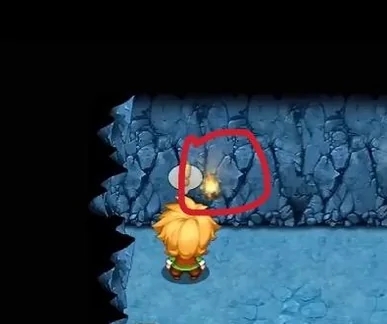 3、到了第三層一直向下走,敲掉擋路的石頭,再向右邊走到底,出來后走左邊到達第四層。