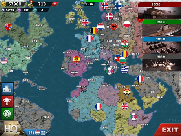 1、全球戰(zhàn)略地圖:無(wú)縫縮放查看世界戰(zhàn)場(chǎng)