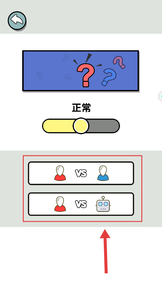 2、隨機(jī)游戲界面,設(shè)難度為【正常】,選【人VS人】或【人VS機(jī)器人】,開啟對(duì)戰(zhàn)。