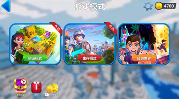 2、隨后會(huì)出現(xiàn)游戲模式,游戲給玩家提供了創(chuàng)造、生存、經(jīng)典等不同模式,玩家可以自由選擇。