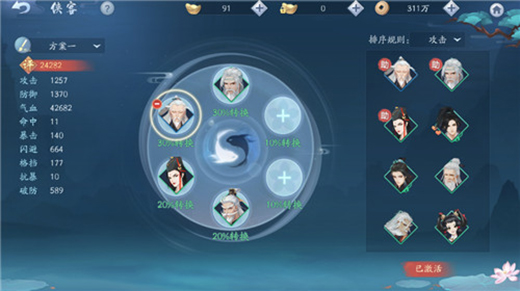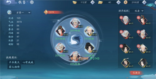3、后面的轉(zhuǎn)換位置可以放置一些等級不高但是可以激活更多俠緣的俠客 ,這樣方便之后的羈絆擴展。
