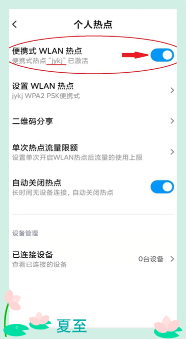 點勾選,回到上一個設(shè)置界面。打開便攜式WLAN熱點(這個是小米手機的界面,其他手機也許有不同)。確定熱點已經(jīng)激活。