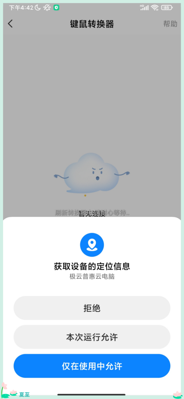 點擊鍵鼠轉(zhuǎn)換器,如出現(xiàn)需獲取信息位置的彈窗,請授予權(quán)限。