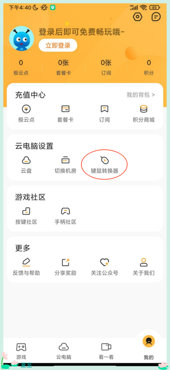 在App界面點擊我的,找到鍵鼠轉(zhuǎn)換器按鈕。