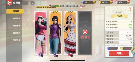 可以用應(yīng)援星光提升等級(jí)解鎖更多的屬性和上陣位置。