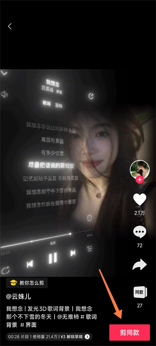 5、選擇一款你喜歡的模版,點(diǎn)擊剪同款