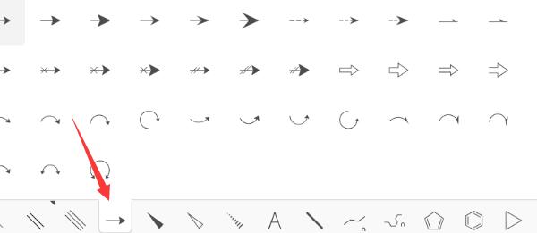 2、長按畫板下方工具欄的【箭頭工具】,可以顯示所有箭頭樣式,您可以選擇需要的樣式點(diǎn)擊使用。