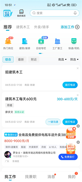 · 招工快:每日更新10萬+建筑、裝修、工廠崗位,定位附近活源,一鍵撥號秒聯(lián)系。