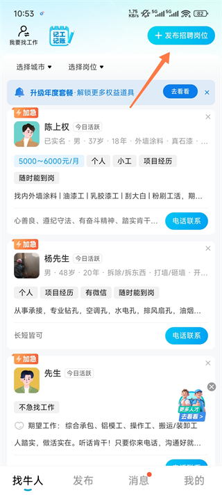 4、當然如果你選的是【我要招人】即可在主頁找牛人或者發(fā)布招聘崗位