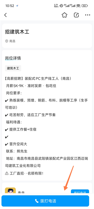 3、查看崗位詳細,覺得可以勝任點擊撥打電話咨詢